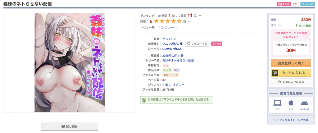 義妹のネトらせない配信を違法サイトガン無視でお得に読めるのはDLsiteでした!