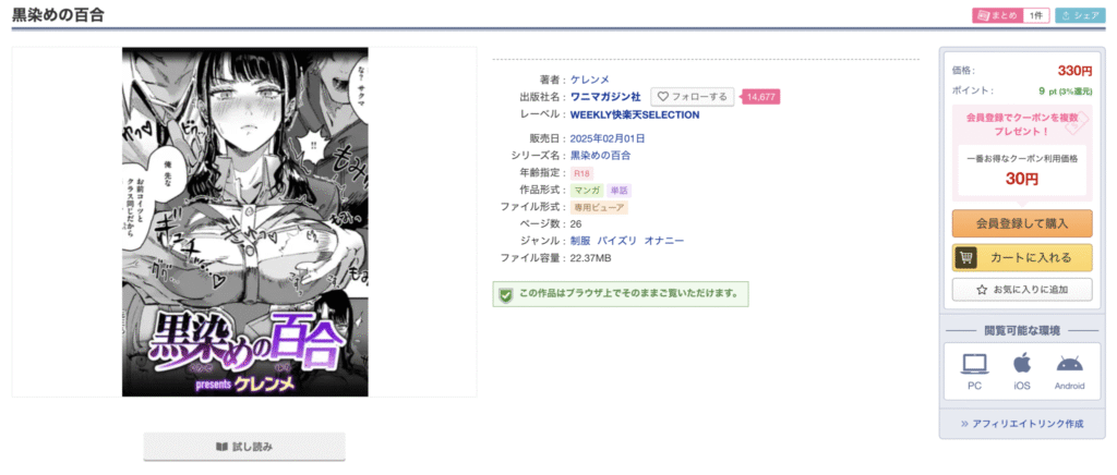 黒染めの百合30円で読めるのはDLsiteだけ!