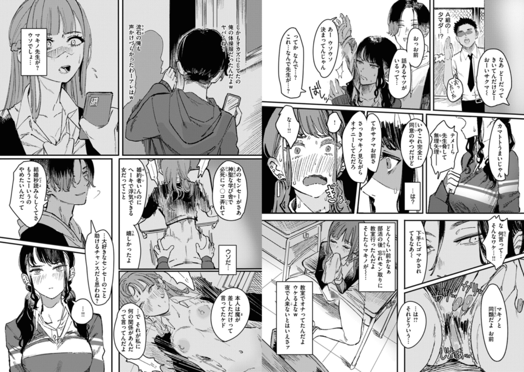 ある日サクマは、クラスの男子から憧れのマキノ先生のハメ撮り映像を見せつけられる。出来心から生徒の着替えでオナニーしていたところを目撃されたマキノは、そのまま男子たちの慰みものになっていた……。