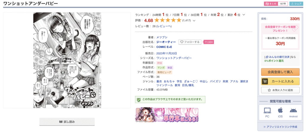 ワンショットアンダーパピーをどこよりも安く読めるのがDLsite!